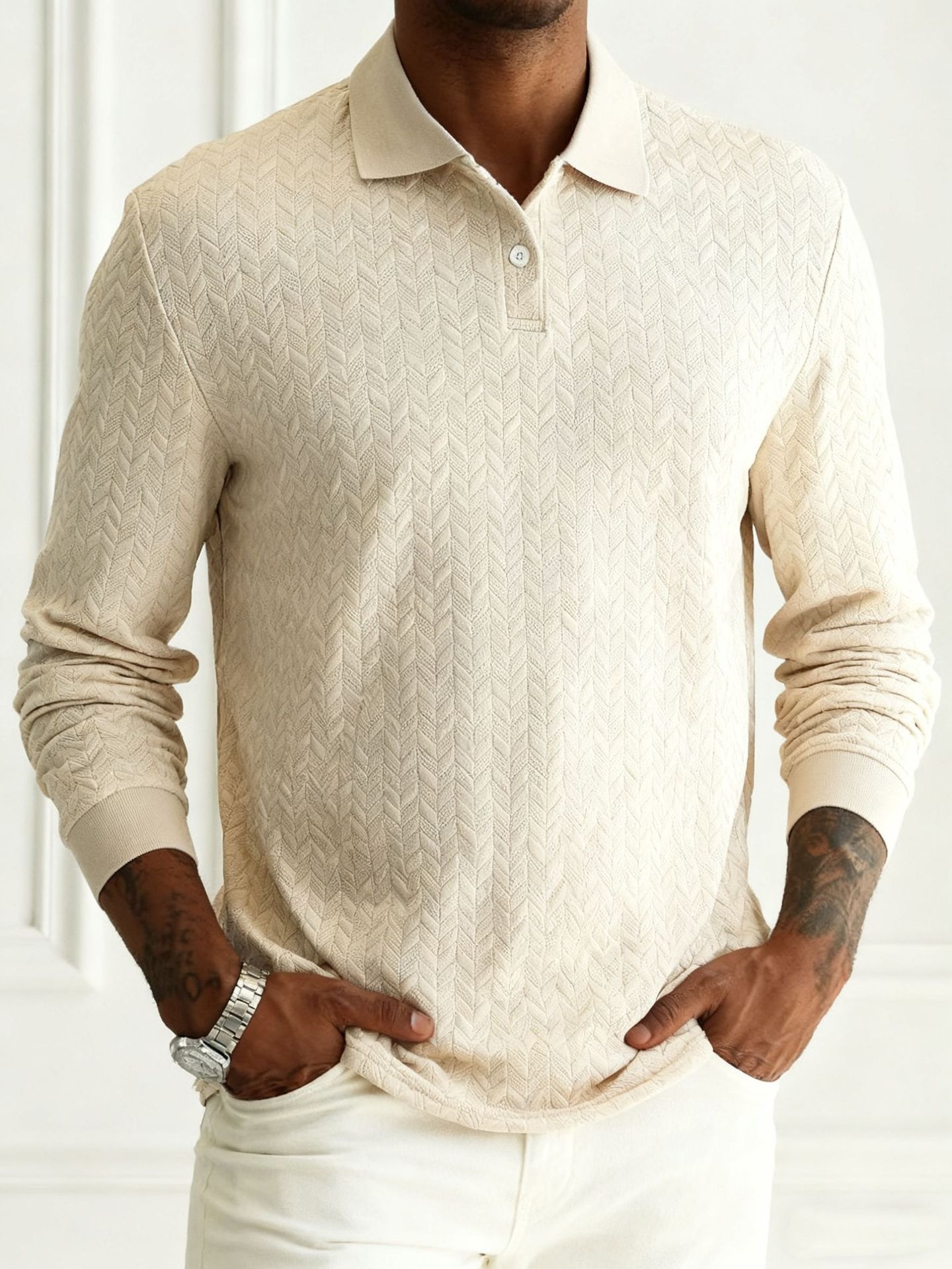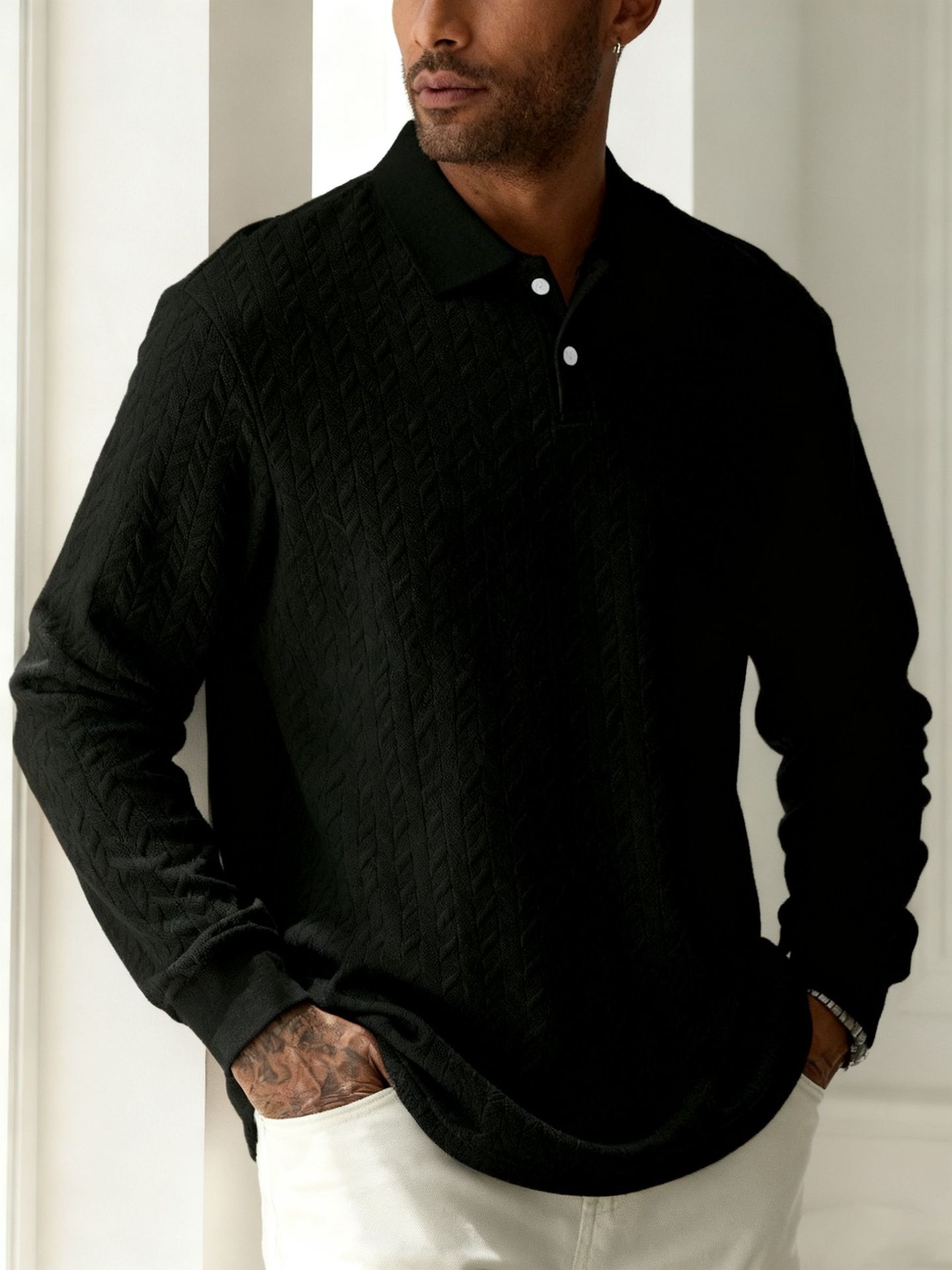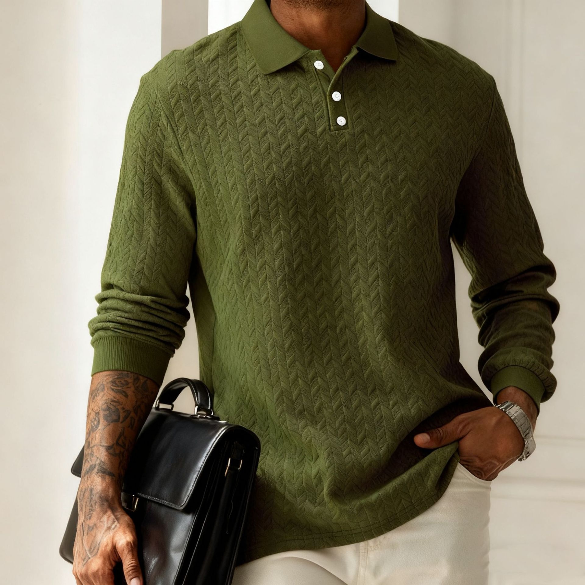 Men's Solid Color Lapel Button-front Long Sleeve Versatile Top