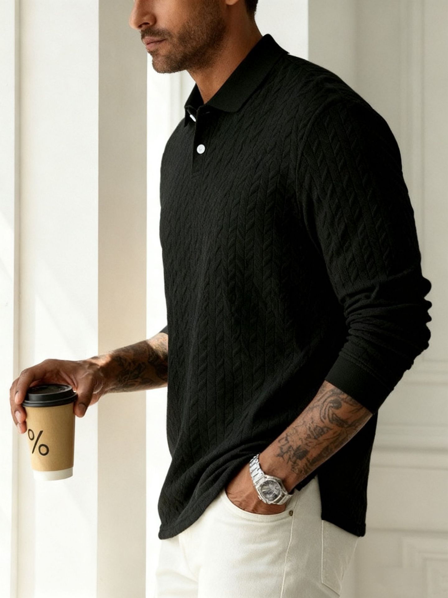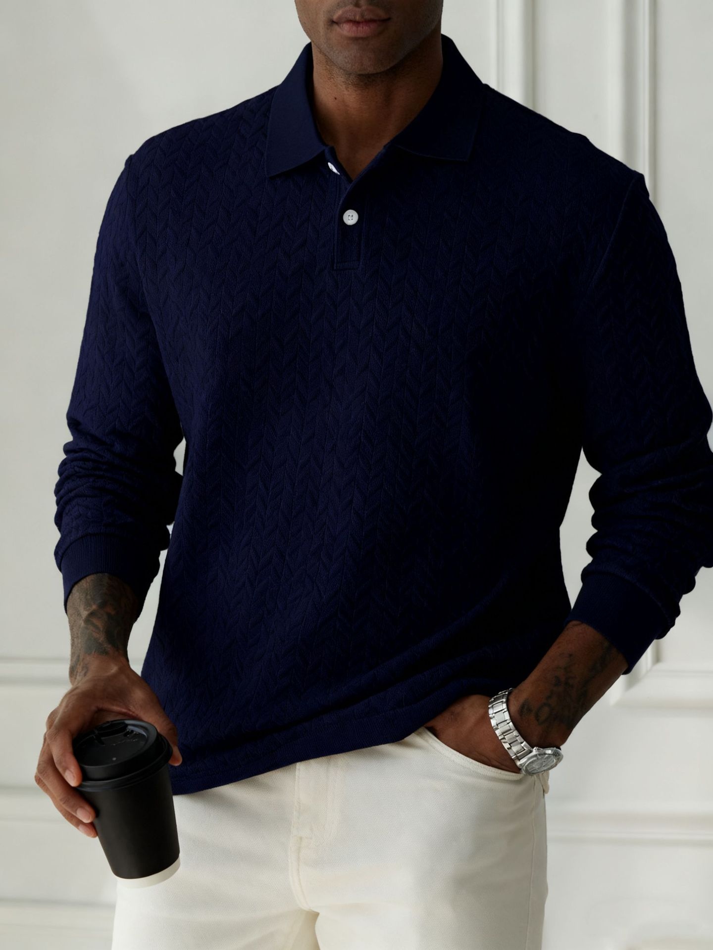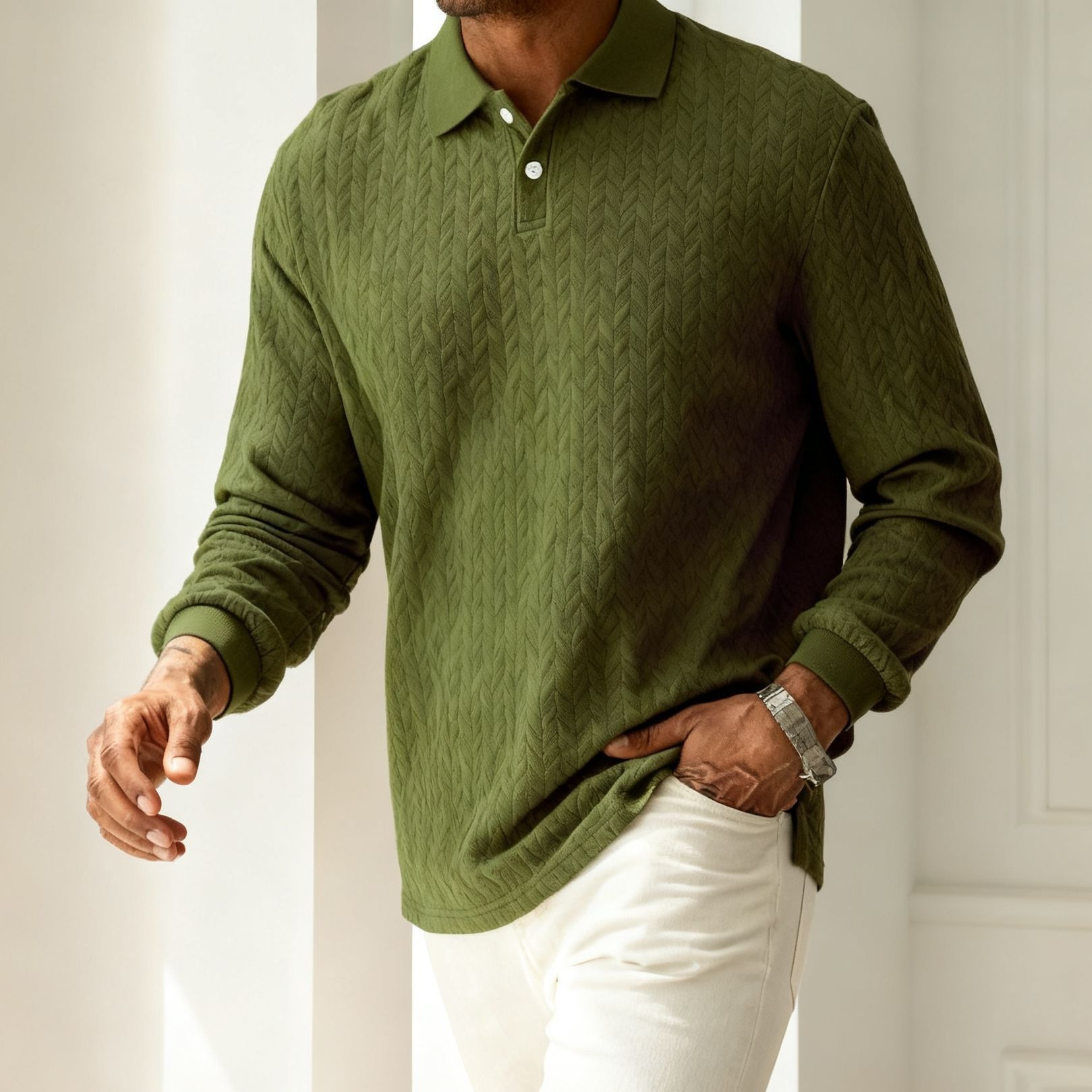 Men's Solid Color Lapel Button-front Long Sleeve Versatile Top